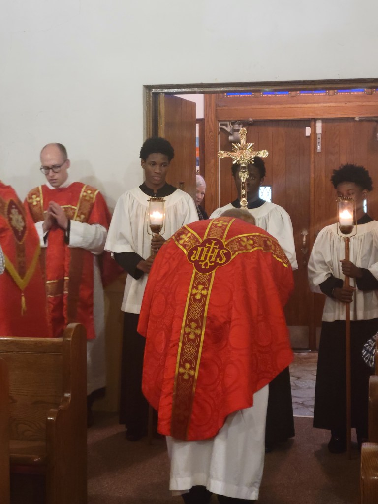 On the Feast of Sts. Philip and James we celebrated the 125th Anniversary of our congregation with a High Mass. We were blessed to have Fr. Christopher Esget, pastor of Immanuel Lutheran Church in Alexandria, Virginia and Synodical Vice-President for the Eastern Region, as our preacher. Fr. Stephan Gramenz, pastor of the Lutheran Church of Christ the King in Pawling, New York, served as deacon, and Mr. Alexander Togba served as subdeacon. Fr. Charles McClean, pastor of the Lutheran Church of Our Saviour here in Baltimore, served as our organist. Several from the congregation served as a liturgical choir, chanting the propers. We were blessed to also enjoy a grand feast after Mass, put on by the ladies of the Society of St. Monica. Special thanks goes to Miss Sharyn Rhodes who wrote the Memorial Hymn sung during the dinner and who serves tirelessly as our Altar Guild. We were also blessed to have excellent wardens from the Society of St. Mark, acolytes, and ushers.