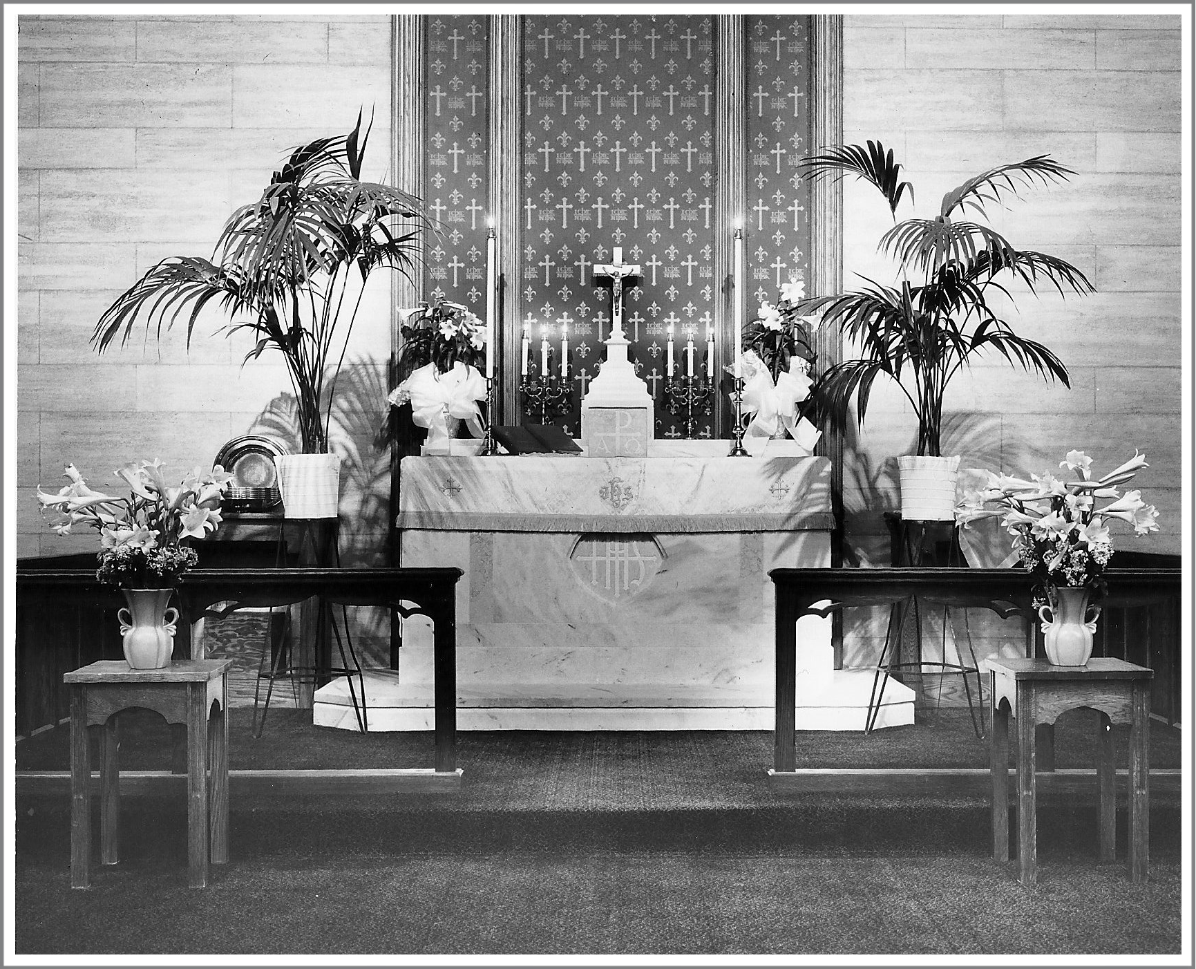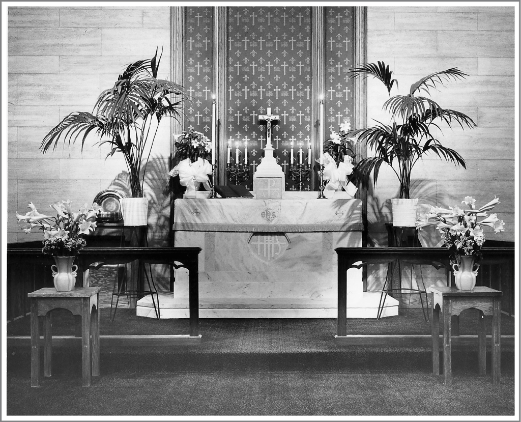 World War II began in 1939 and struck our country in 1941, and during its course forty boys and one young lady from Redeemer entered the various branches of the United States Armed Forces. Pastor and congregation loyally supported the government and gave cheerful assistance in all safety measures against fire and possible bombing. Contributions for the management of the various Service Centers and our own in St. Paul’s Parish Hall were freely given. Pastor and people kept in touch with fellow members enlisted in the armed forces by diligent correspondence. All the regular church services were faithfully continued, often to the exhaustion of the Pastor. In the second year of the War, at the July 2nd congregational meeting, he was compelled to announced that he had to undergo a serious operation which would disable him for 2 months. The Vestry was then authorized to make all necessary arrangements to have his pulpit filled and other spiritual needs of the parishioners cared for. This was promptly done, and the Pastor was relieved of a part of his understandable anxiety. He entered Bon Secours Hospital, his operation was successful, and permission was given for his return home in the last week of July. For several days he enjoyed the loving care of his family, but a sudden heart stroke caused his death on July 31, 1942. After a solemn, impressive funeral service at church, with Pastor J. George Spilman, President of the Southeastern District of our Synod in the pulpit, Pastor Kreinheder’s earthly remains were laid to rest in August, 1942.